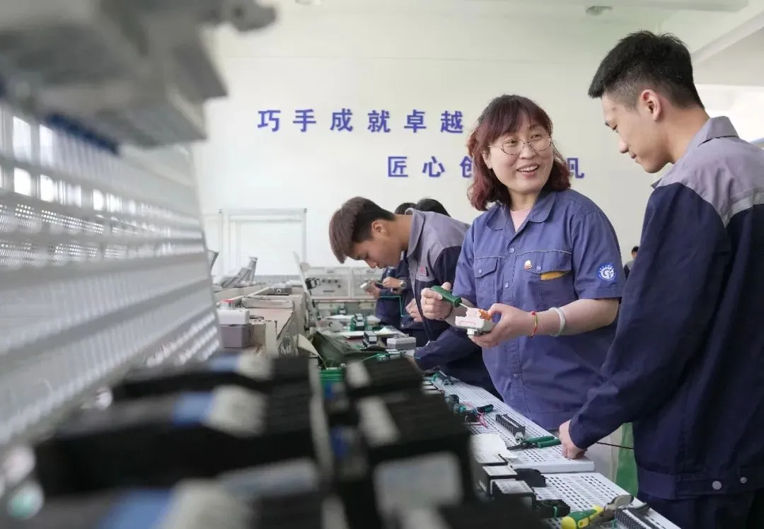 秦皇岛工业职业技术学院的老师指导电工专业学生练习接线。图:新华社