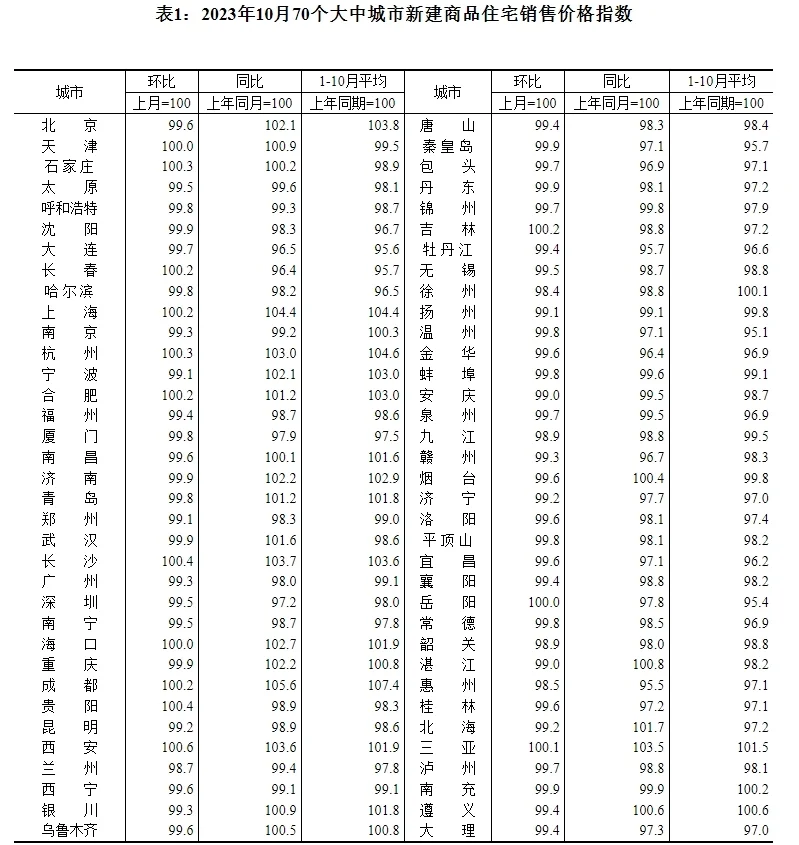 11月16日,国家统计局发布70个大中城市房价数据。数据显示,10月新建商品房和二手房销售价格环比下降城市分别达到56个和67个,均比上月增加2个。