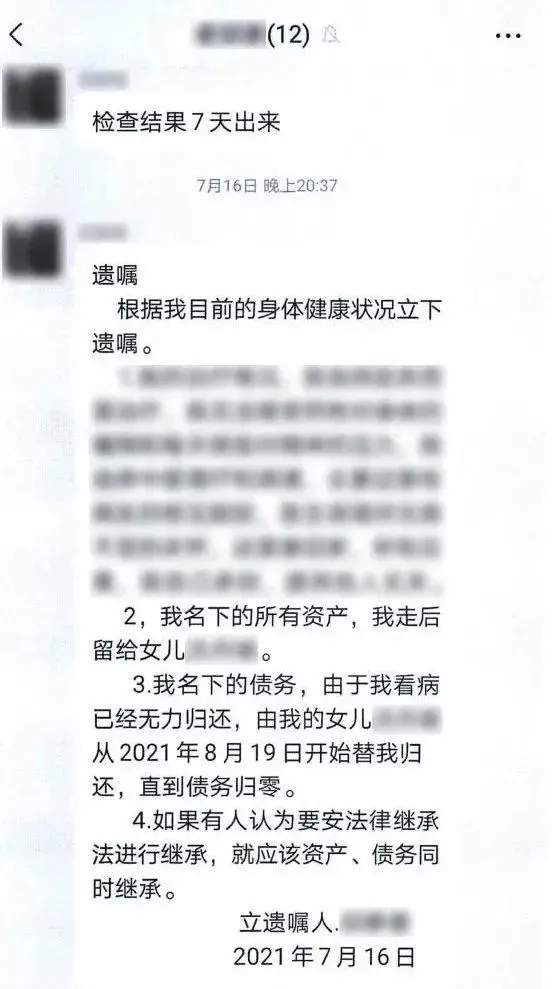 女子微信群留遗嘱给女儿