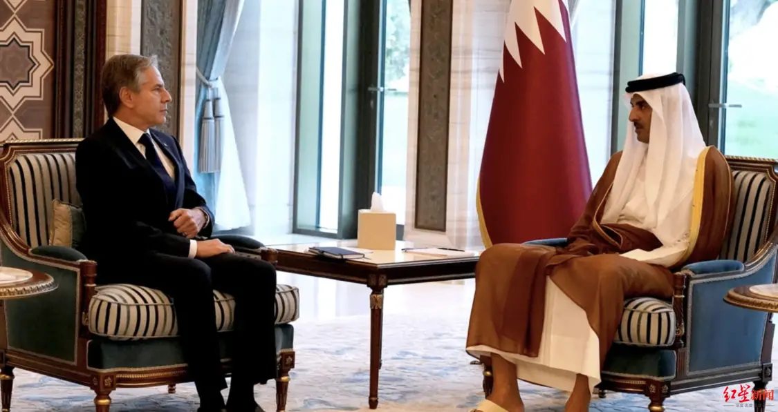 ▲美国国务卿布林肯和卡塔尔埃米尔(国家元首)塔米姆10月13日会面