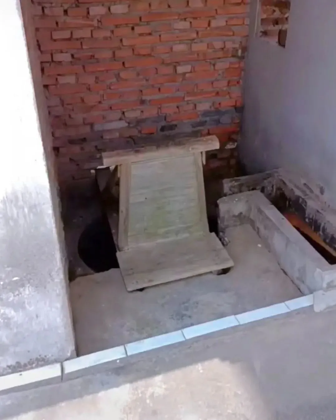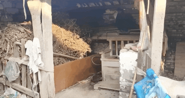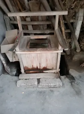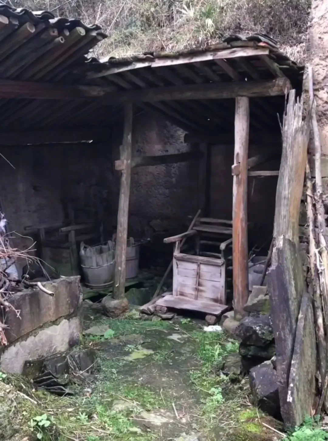 “龙椅下面是个容积巨大的粪池,后面一般是猪圈或者是如图的堆柴草的仓库,以前屎作为肥料是要存着浇田的,很多小伙伴小时候调皮捣蛋应该多少都会听说村里谁掉过粪坑谁吃过屎,这种童年的糗事发生的概率还是很高的,我家附近几乎每个村都有这样的人才。”