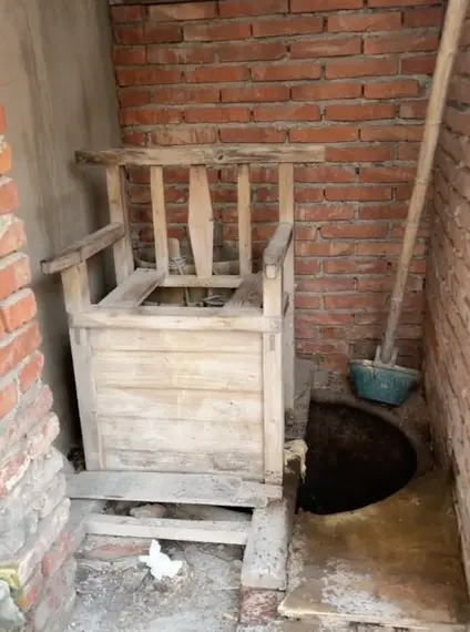 “我小时候就是这样的,边上厕所边和路过的邻居打招呼。我爸爸那时还做了个小的,放大的边上,这样可以两人同时上厕所。”