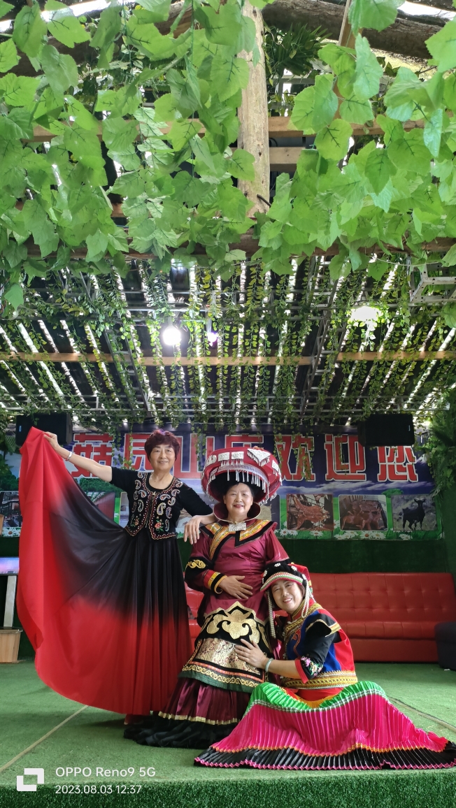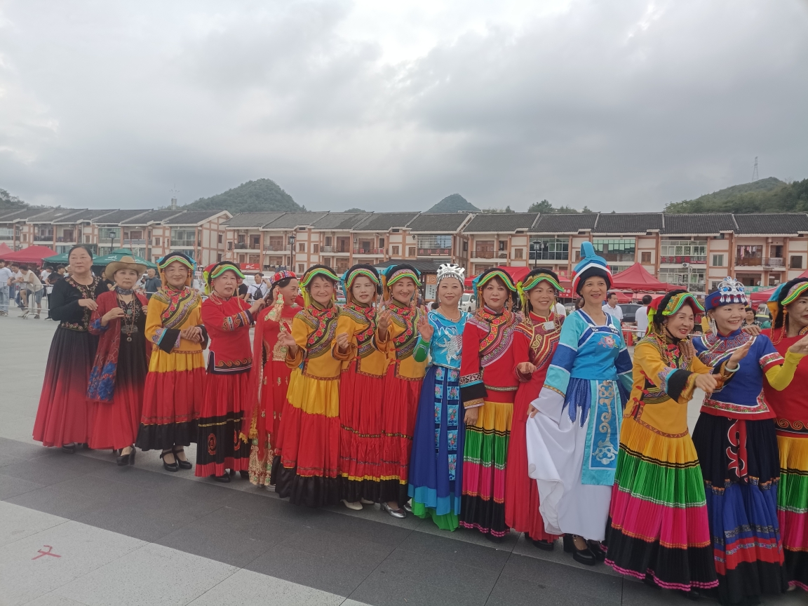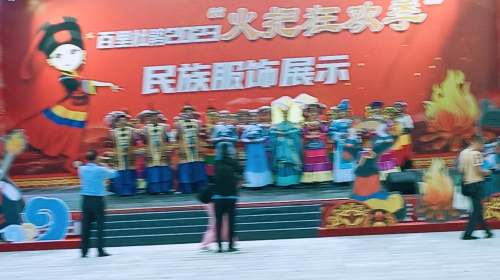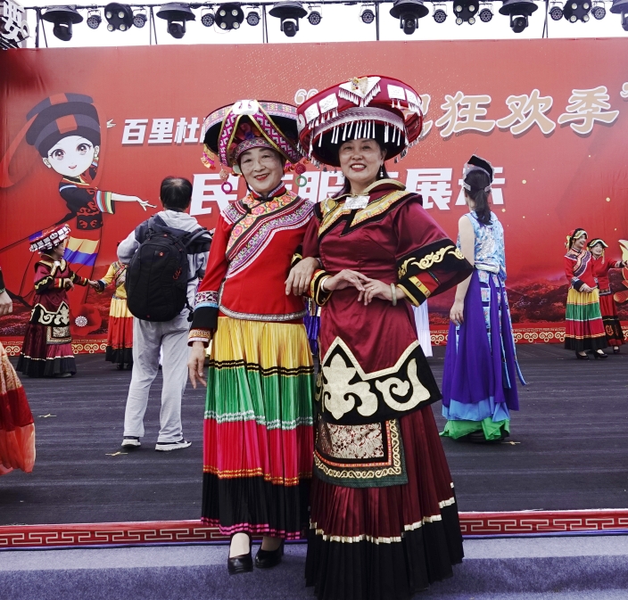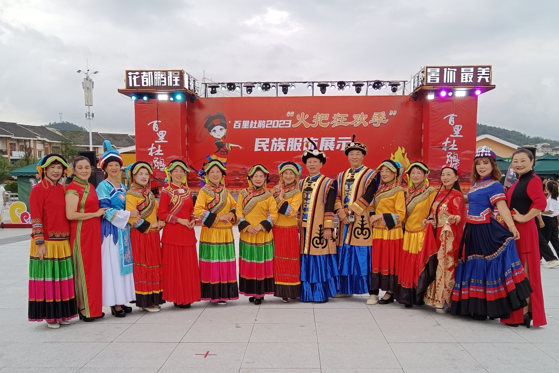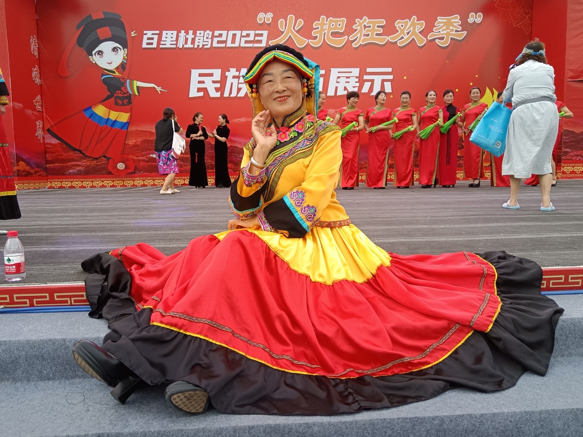 自贡人在百里杜鹃过火把节,参加民族服饰展演。