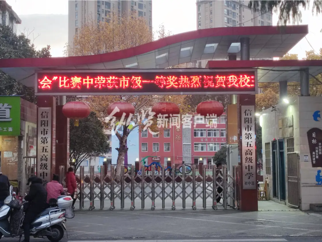信阳市第五高级中学(初中部)。(来源/郑女士提供) 27日下午,纵览新闻记者联系到了信阳市第五高级中学的王校长了解情况。王校长表示,事件发生后,信阳市浉河区委政法委、公安、教育等部门第一时间介入调查,目前已有结论,这名学生是在上体育课时慢跑两圈晕倒后抢救无效死亡,系猝死,已排除刑事案件。由于操场没有安装监控,故无法提供监控视频,不是拒绝提供。 王校长表示,学校对这件事没有责任,但出于人道主义考虑,会给家属一定数额的补偿,目前仍在积极与家长进行协商处理,尚未达成一致。 信阳市浉河区教体局工作人员表示,区里多个部门已经介入此事,正在进行协调、处理,具体情况不便在电话里透露。