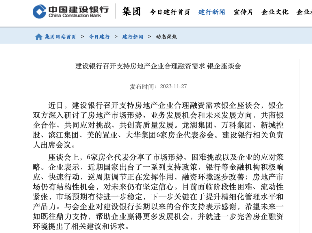 同时由建行总行出面,召集6家房企开座谈会,准备进一步支持房企融资需求,补充流动性。