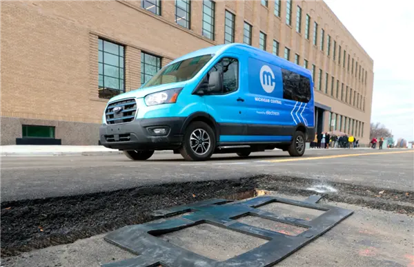 11月30日消息,据报道,北美第一条感应充电公路在密歇根州底特律亮相。