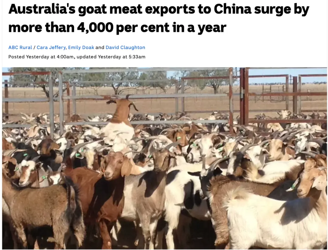 澳肉类和畜牧业协会全球供应分析师杰克逊表示,自去年以来,澳屠宰的山羊数量增加了近50%,其中大部分销往中国。西达令牧民协会主席兼布罗肯·希尔牧场主史密斯说,之前他的牧场山羊数量翻了一番,但出口价格却降至十年来最低点,因此他很高兴看到中国的市场带来竞争 。