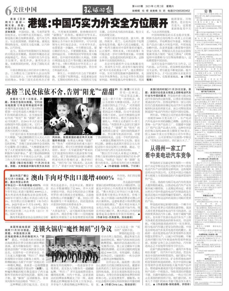 中国对澳大利亚山羊肉的需求迅速增长,自今年年初以来进口量增长4000%以上。澳大利亚肉类和畜牧业协会报告称,2022年中国仅占澳山羊肉出口的不足1%,但自那以后份额增至(如今的)20%。2022年前10个月为135吨,到今年10月底增至 5587 吨。这令中国成为澳大利亚的第二大山羊肉(出口)市场,仅次于美国。