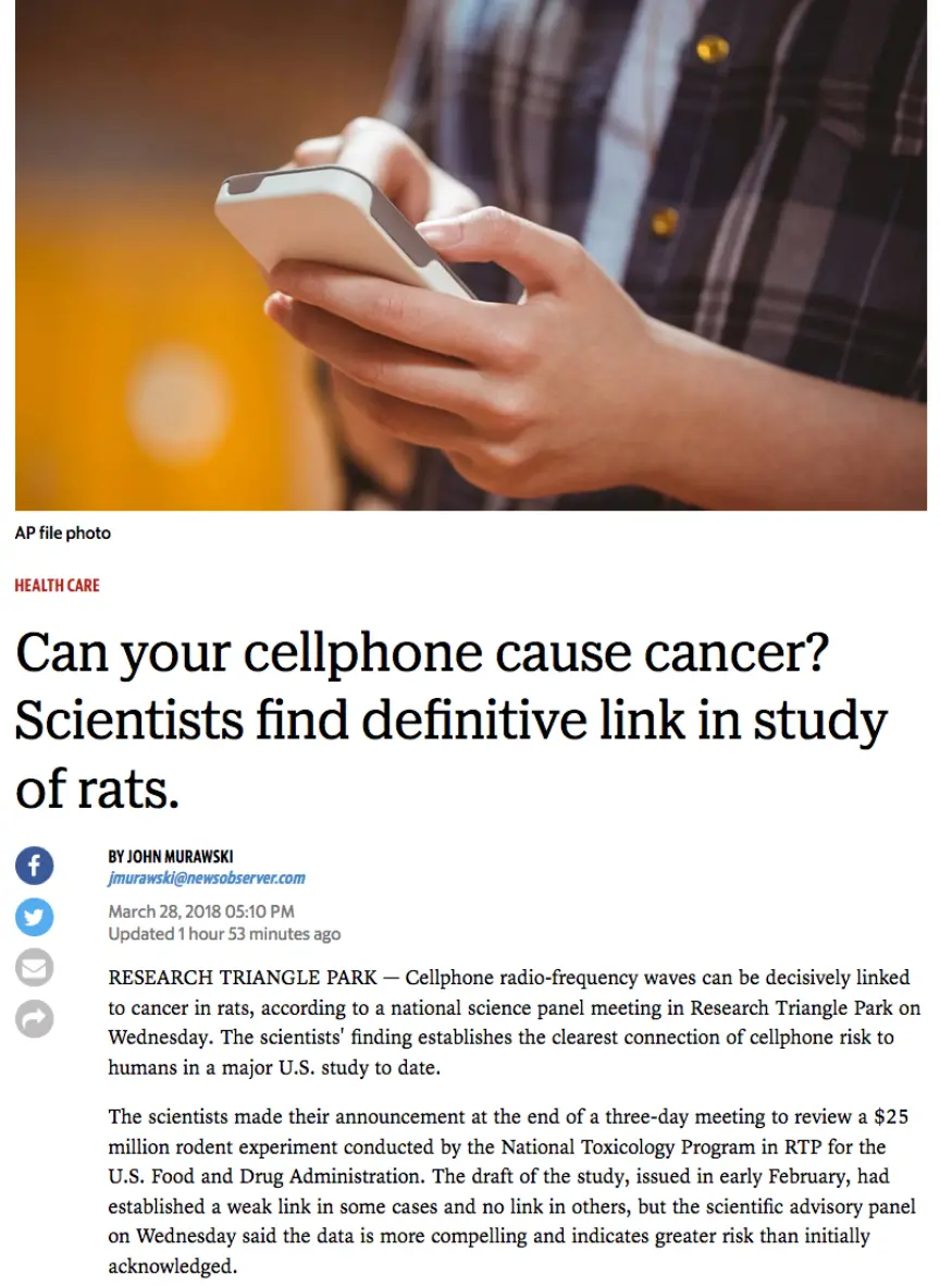 美国国立卫生院研究结果:癌症与手机辐射之间存在联系!但FDA为何反对这一决定?
