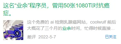 他曾自掏腰包训练了个 AI ,还整了个免费的网站,让人工智帮你“ 看片子 ”,能快速诊断出乳腺癌。