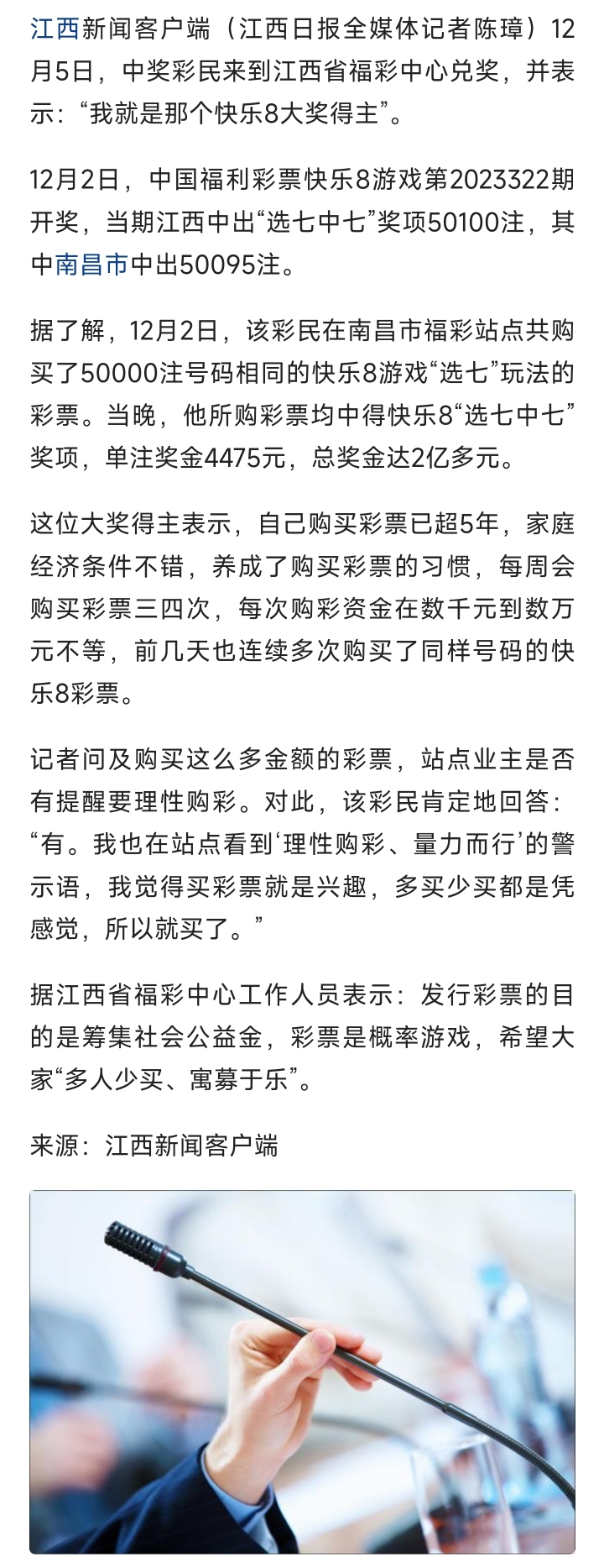 [盐都杂谈] 2.2亿彩票中奖得主已现身兑奖:每周会购买3~4次