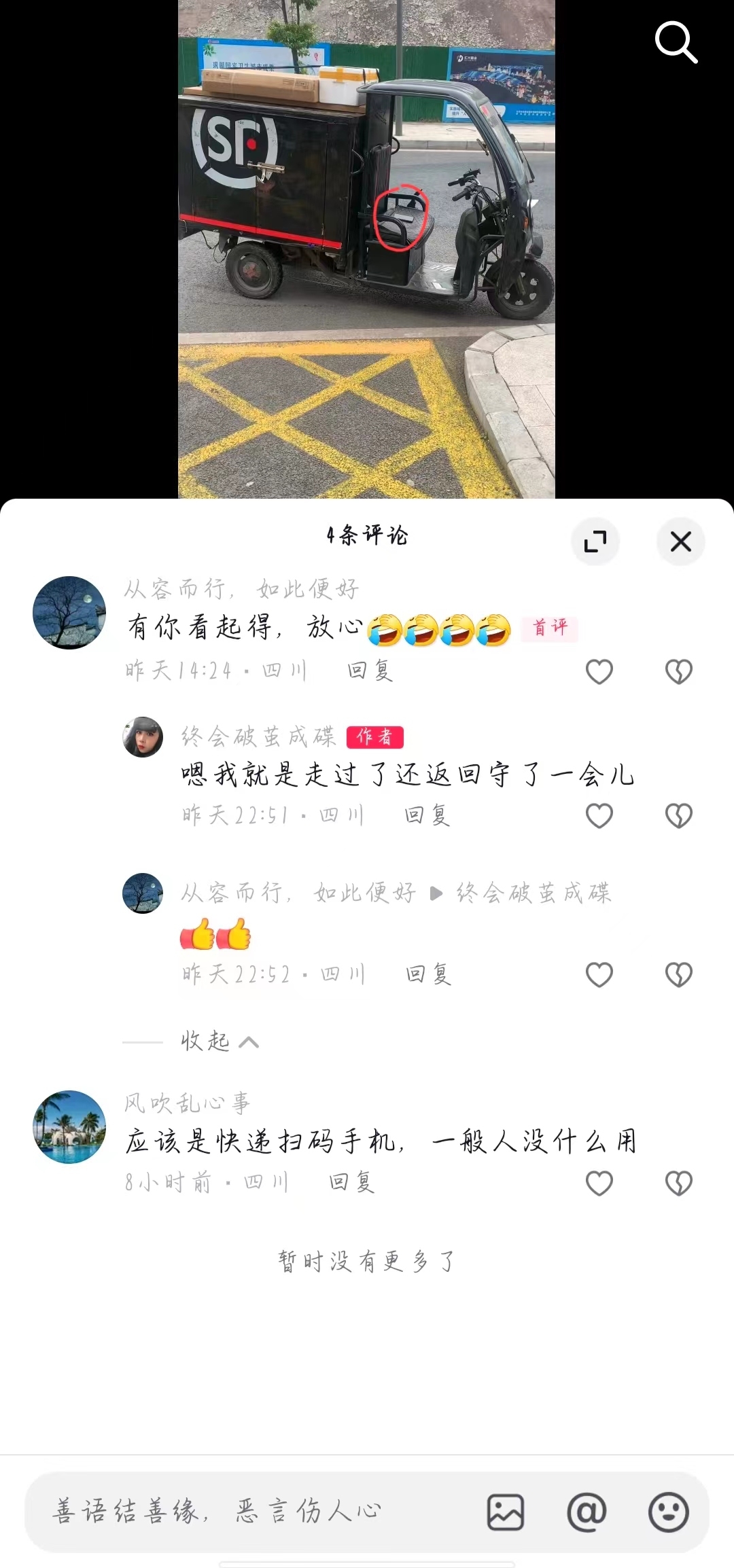 自贡这个网友还挺好,快递小哥的手机放在车上,她还帮忙守了会儿