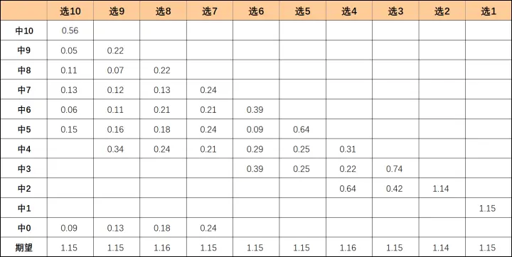 “不能光看中奖概率,还要看每次中奖获得多少奖金,也就是计算中奖期望。”根据李永乐计算,虽然不同玩法中奖率差别很大,但是返还奖金的数学期望值大约都在1.14-1.16之间,平均大约1.15。