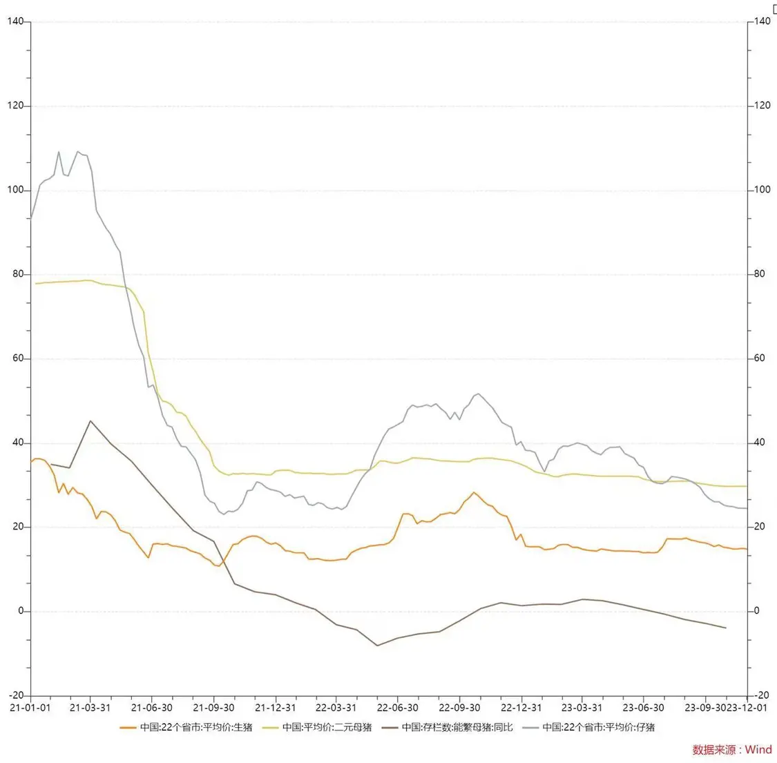 国信证券研报也指出,在猪价低迷和养殖疾病的干扰下,能繁母猪产能开始加速去化。考虑到2024年上半年猪价可能维持深度亏损水平,行业中资产负债率和养殖成本双高的养殖群体有望迎来产能出清,预计猪周期有望实现反转行情。