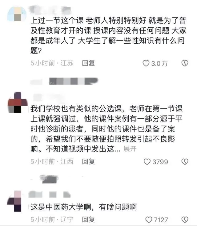 对于此次舆论风波,有网友认为课件内容过于露骨,不宜在课堂上出现。也有人表示“这是中医药大学有啥问题”“学医的啥没见过”“医学面前不分男女” “中西医结合性医学,不讲这个讲什么?”。