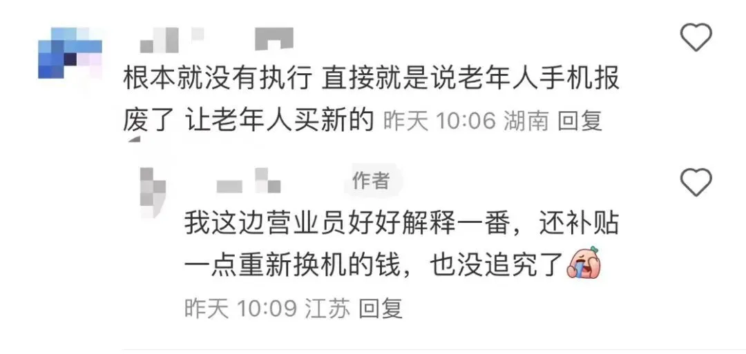 根据某位贴主的说法,家里的老人机没法儿正常使用以后,电信营业厅那边补贴了一部分重新换手机的钱。