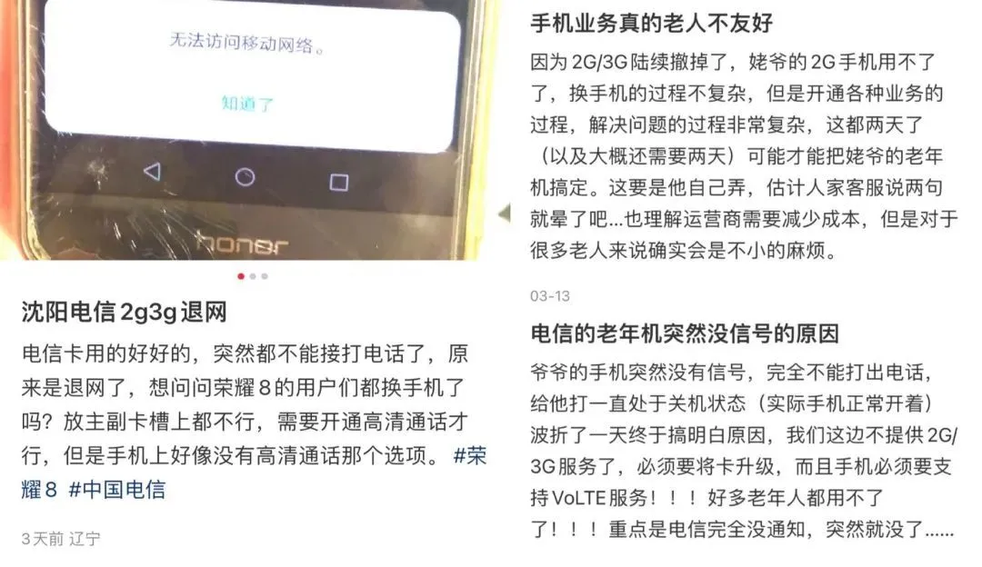 在某平台上,从今年年初开始就已经有部分地区的人反映, 2G 、 3G 网络没法儿用了。