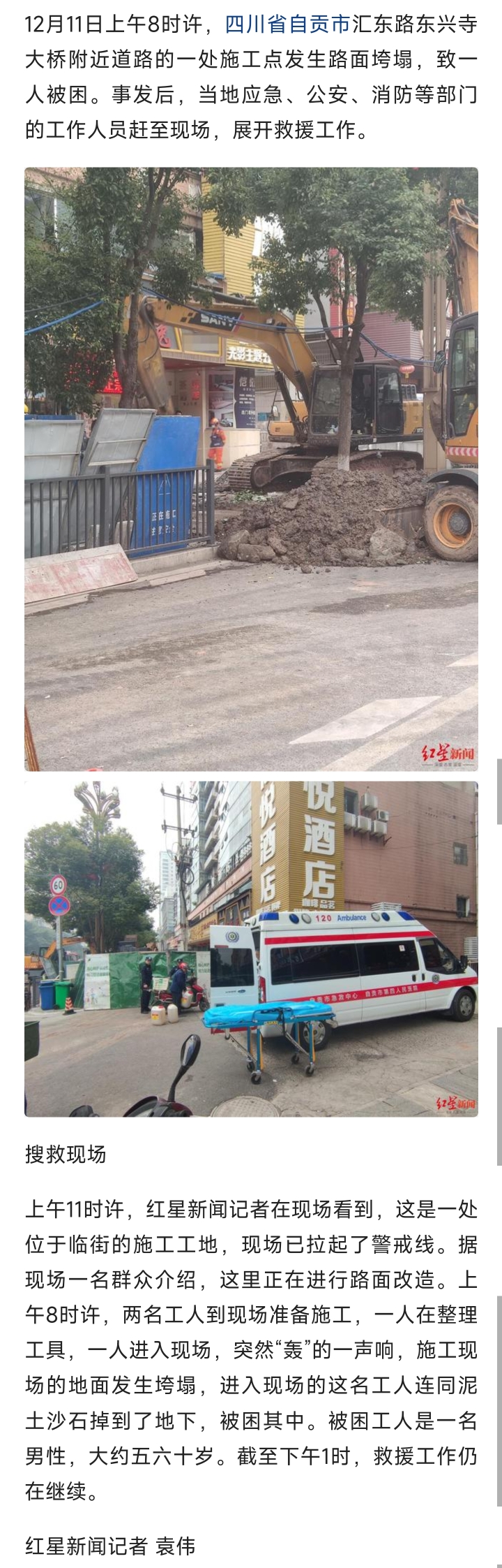 [盐都杂谈] 自贡1施工点发生路面垮塌:1人被困,多部门赶到现场展开救援