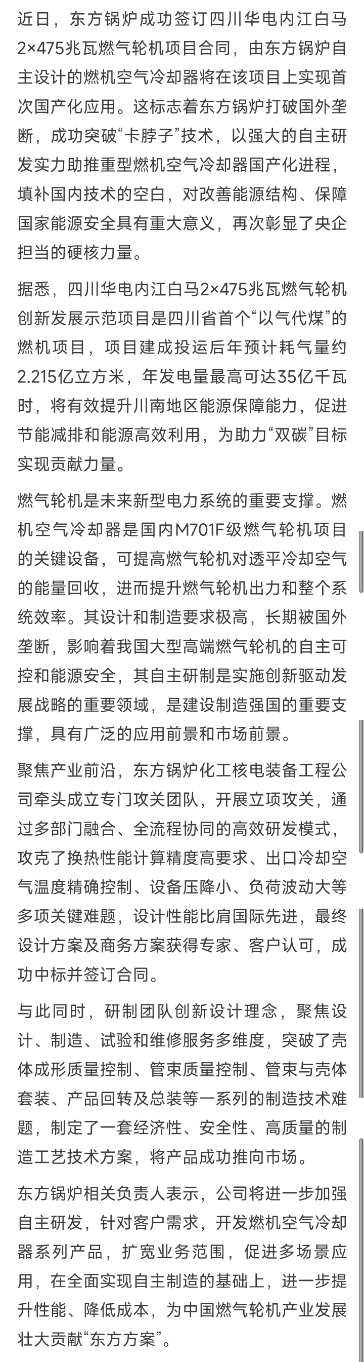 [盐都杂谈] 填补国产化空白!东方锅炉自主设计的重型燃机空气冷却器签下首单