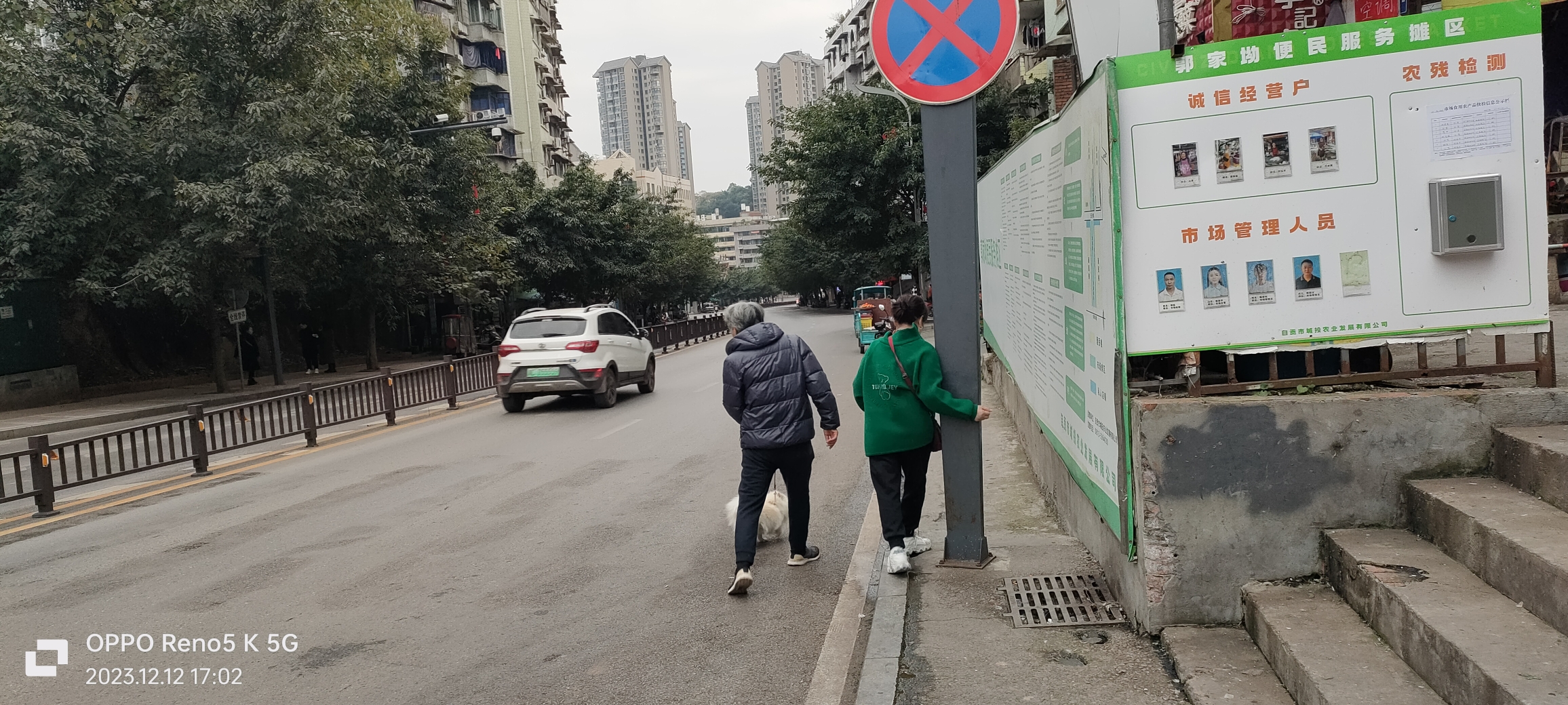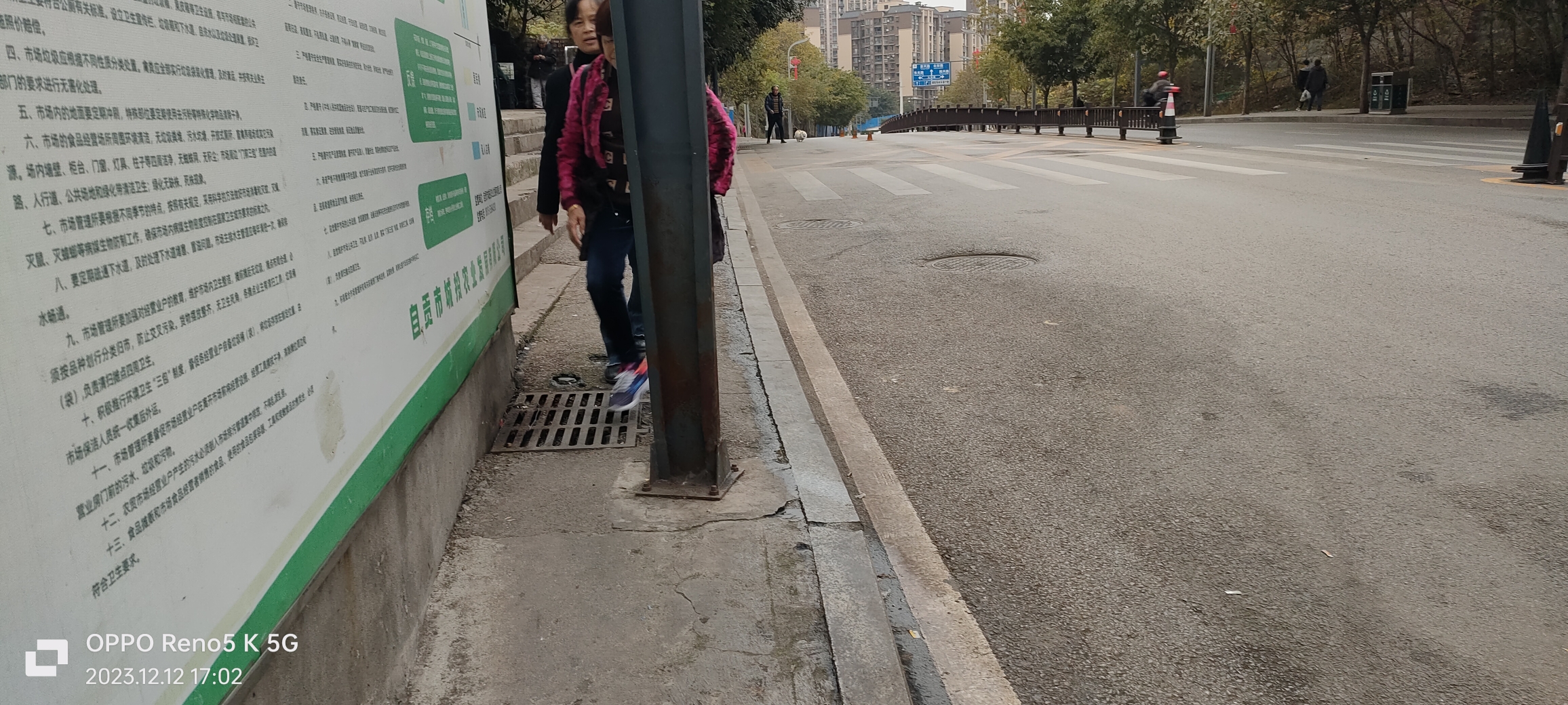 城市街道人行道的宽度在规划设计上,不知有何住建规定,不是从事建筑的人,不会知道这些的,在人们普遍的认知中,大城市的人行道应该是宽敝的,想象应该是这样!可是,自流井郭家坳菜市斜坡下来,光凤路(郭家坳路)有一段,仅能一人通过,若是两人一路同行,就有一人,要走上公路,现场实拍图片更为直观,最窄人行道,是自贡城市的一大特色。