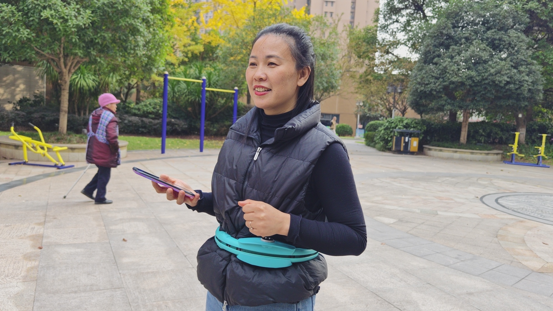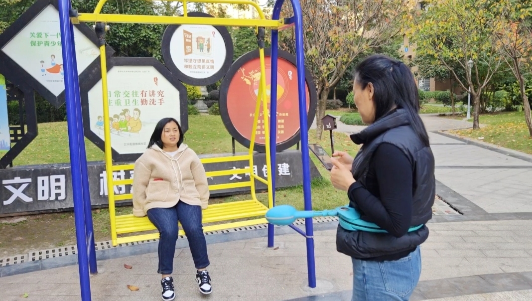 郭老者在创兴城小区看到同一棟楼的邻居《友之缘》在小区花园用甩腰方式锻练身体,据她介绍说这种方式效果好。