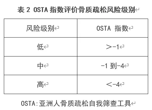 OSTA指数=(体重/k -年龄/岁)×0.2
