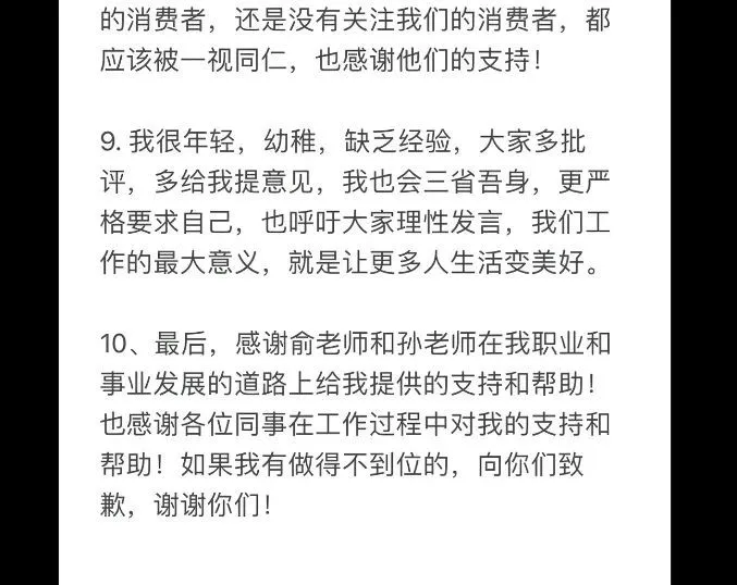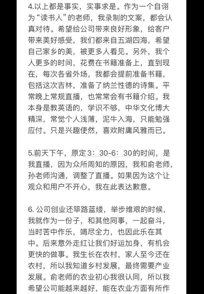 既然,董宇辉是提前沟通了的,且经过你同意的,而且我看后面董宇辉的声明中提到,当时他也跟俞敏洪沟通了,既然这样,就不应该公开再拿出来说,更不应该表达“其实有任何的内部问题不应该影响既定的直播安排”,即便加了“但是”,也非常不好。