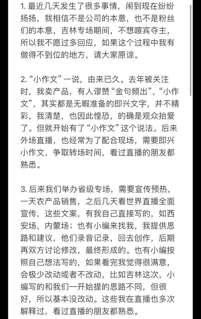 目前只有董宇辉,大半夜,凌晨一点多写了长长的几页说明和致歉。