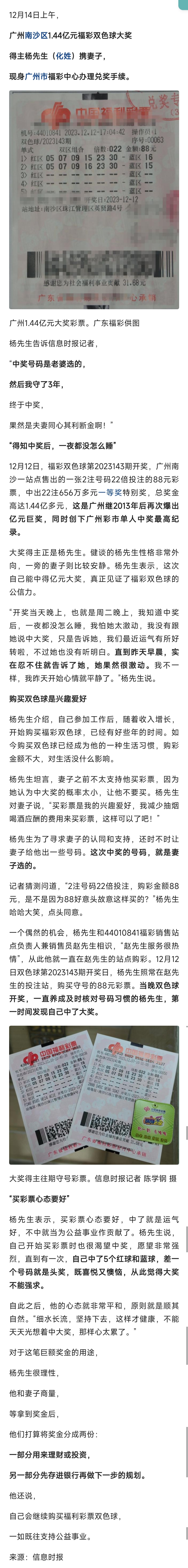 [盐都杂谈] 广州1.44亿大奖得主 现身兑奖