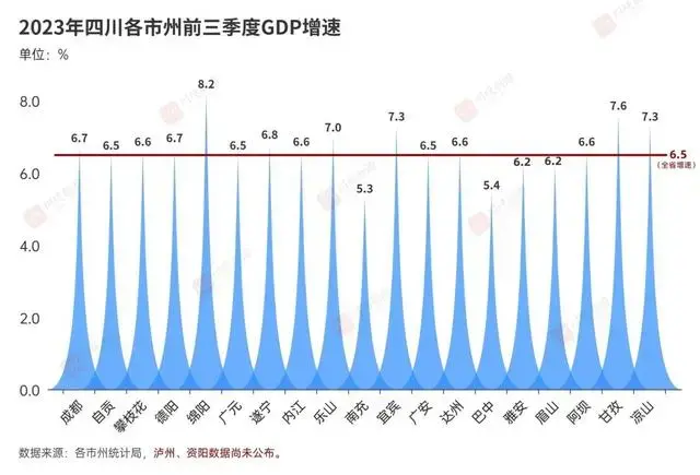 今年前三季度,绵阳和宜宾的GDP增速在省内数一数二,分别为8.2%和7.3%。