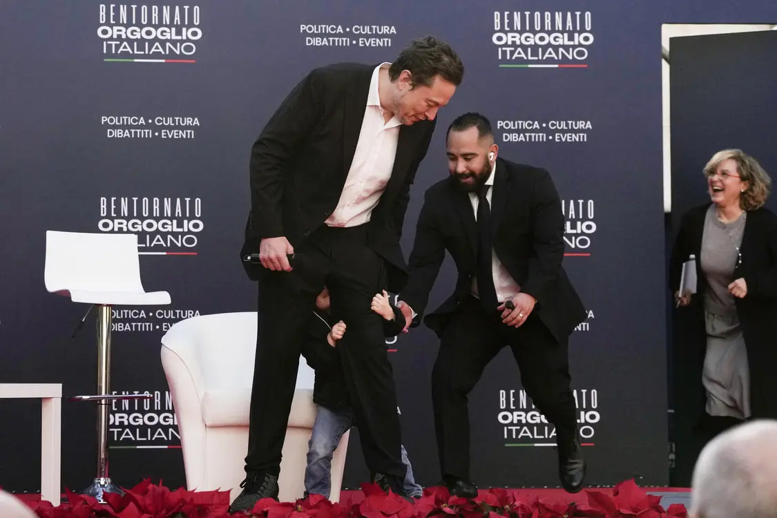 ▲当地时间12月16日,马斯克带着他的儿子参加Atreju大会
