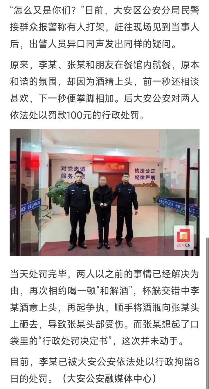 [盐都杂谈] 酒精惹祸!大安公安接连出警遇“熟人”