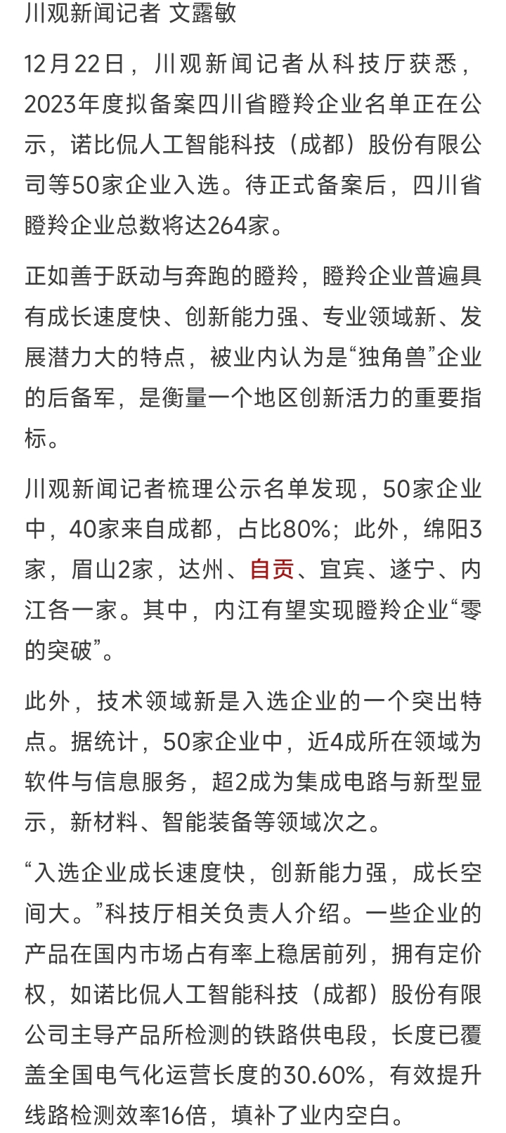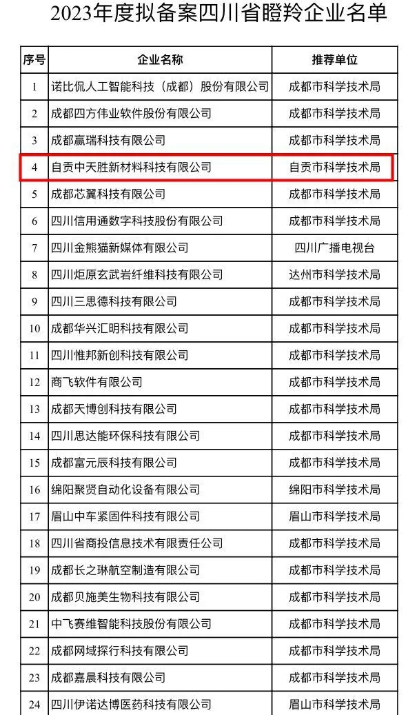 [盐都杂谈] 自贡1企业入选!2023年度拟备案四川省瞪羚企业名单公示