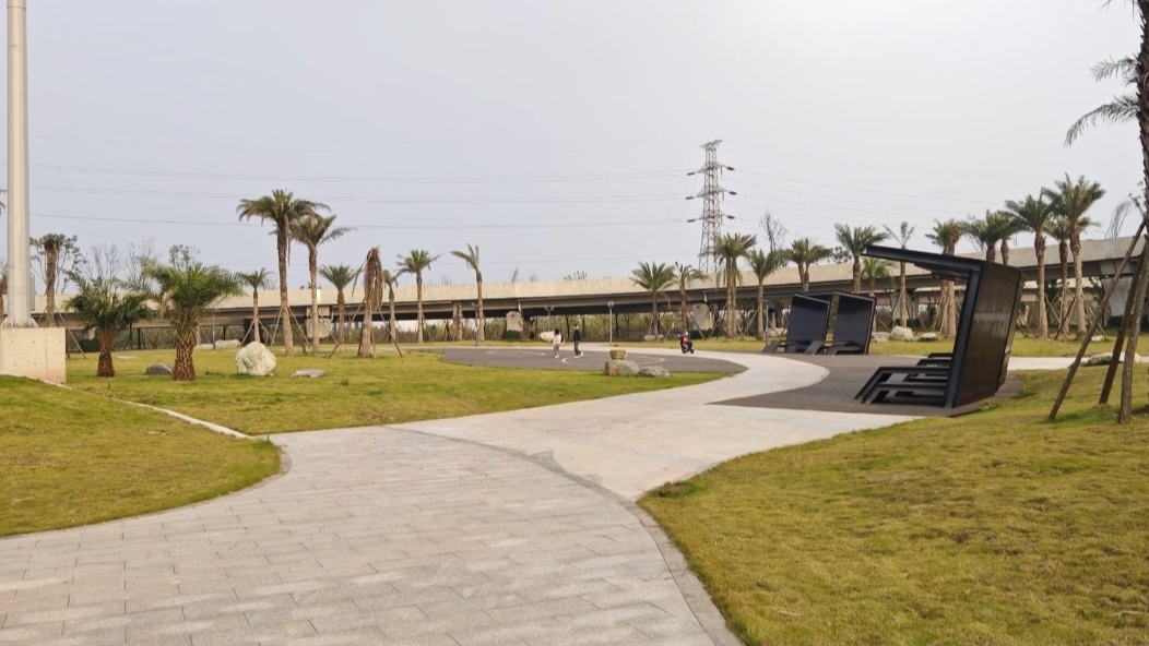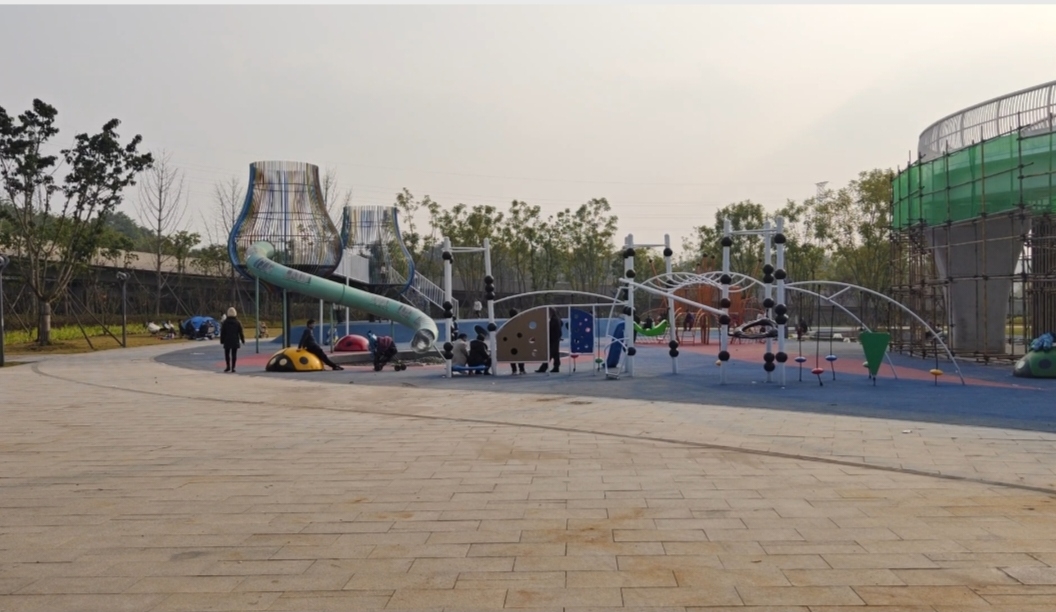 从沿滩新城出发,往自贡高铁車站和沿滩方向去交叉路口,就是立交桥,下面面积很大,就是一个被人称为“口袋公园”,环境优美,儿童玩耍的项目好几个,公园还在进一步完善中,也有一些大人小孩在休闲娱乐。