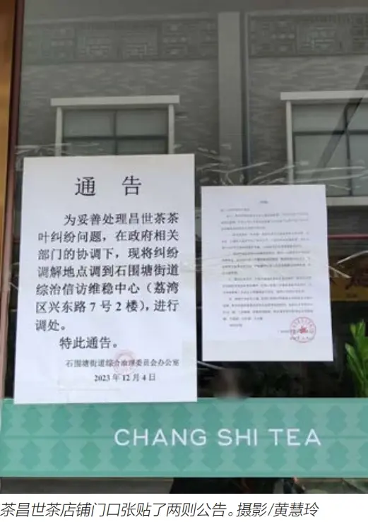 12月11日,《财经》在走访中发现,昌世茶店铺门口已经拉起了警戒线。