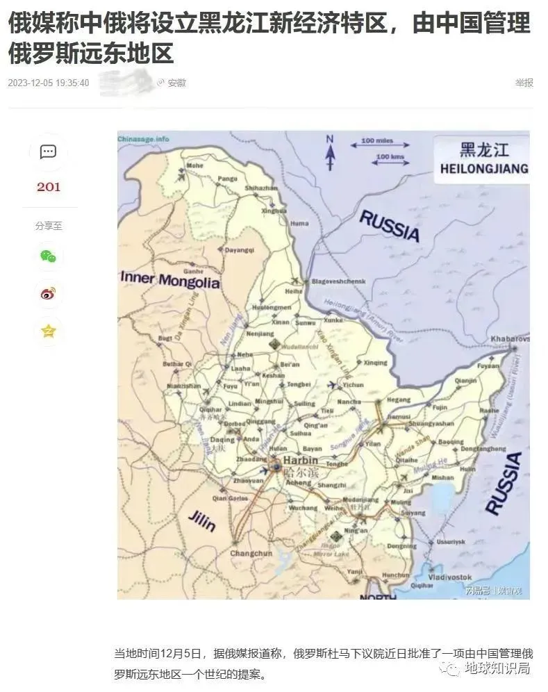 近期在网络上,特别在投资论坛上,流传一则俄罗斯杜马已经批准中国管理远东地区的“大新闻”。该消息援引所谓的俄媒的信息称:将哈尔滨设立中俄管理委员会,负责监相关活动。允许黑龙江户口人员进出指定的俄罗斯远东地区并在当地定居。新的黑龙江经济特区将拥有自己的关税区,并且不征收进口税。