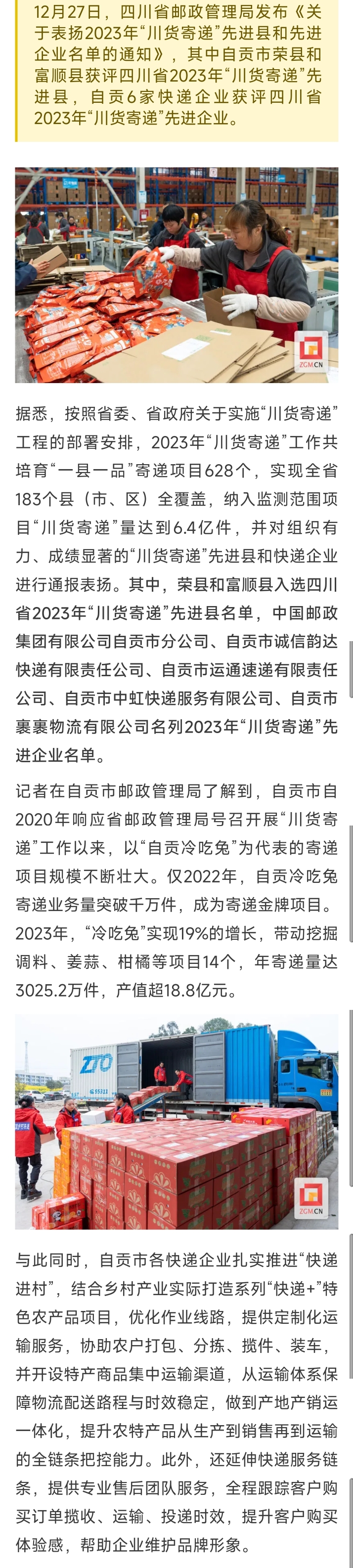 [盐都杂谈] 五星好评!自贡这些地区及企业获评四川省2023年“川货寄递”先进