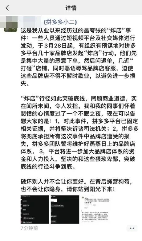 毕竟之前拼多多偏袒消费者,导致白嫖党们横行霸道,直接就引发了一场轰轰烈烈的 “ 炸店风波 ” 。