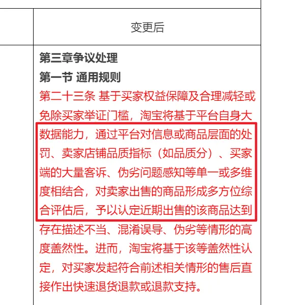 来源是淘宝这个月 19 号发布的一份《 淘宝平台争议处理规则 》。