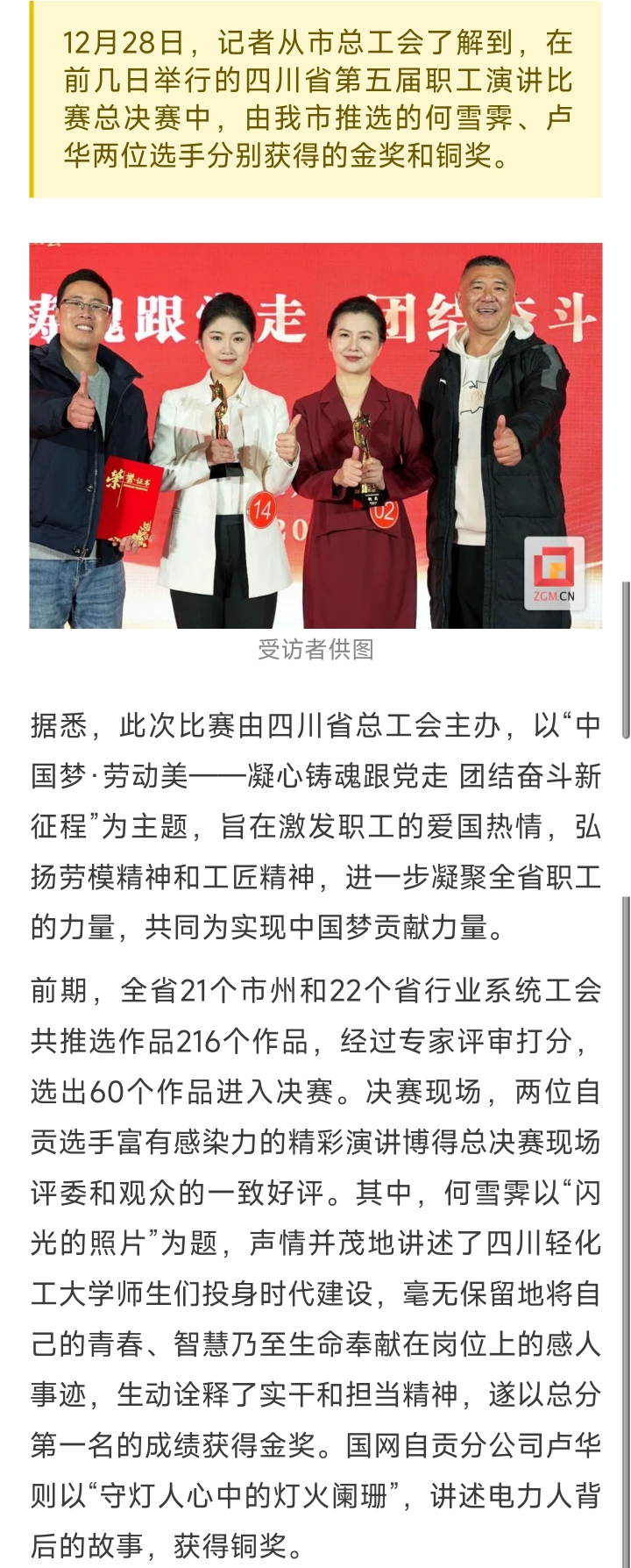[盐都杂谈] 自贡职工在四川省第五届职工演讲比赛中获金奖