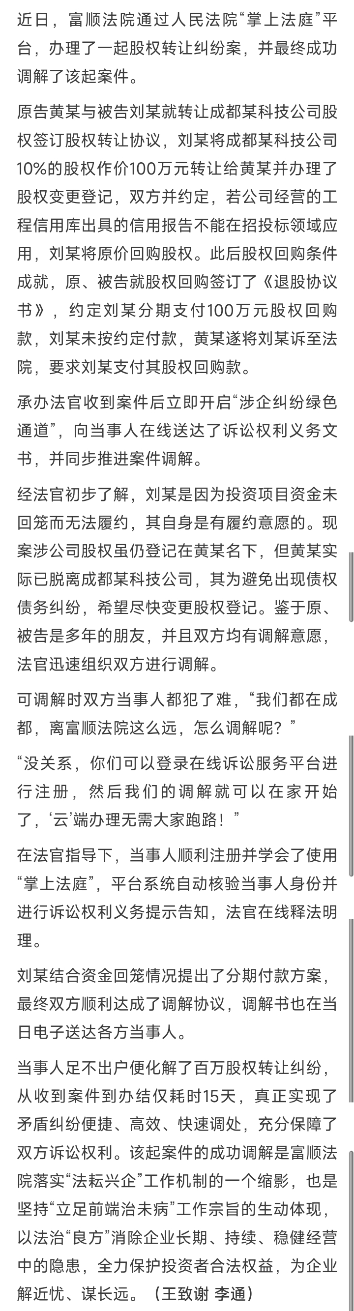 [盐都杂谈] 富顺法院“云”端办案 股权纠纷高效化解