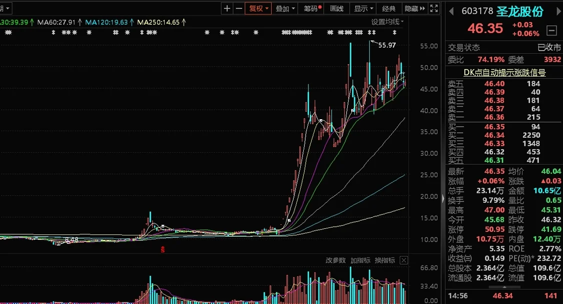 圣龙股份以386.87%涨幅位居年度第三,公司主营发动机油泵、变速器零件等产品,同时叠加了华为汽车概念,是捷荣技术之后最强的人气股。国庆节后走出一波14连板的行情,并且带动“龙字头”和“无厘头”的炒作,之后诞生了三柏硕、银宝山新、龙版传媒、龙韵股份等一大批人气股。