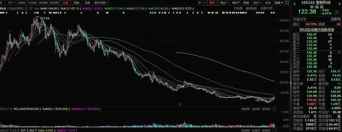 昱能科技以69.75%的跌幅排名第四,同时也是非ST中跌幅第一的个股。公司专注于光伏发电新能源领域,主要产品包括微型逆变器、智控关断器、能量通信及监控分析系统等。作为去年的明星股,上市之后一路走高,总市值一度超过500亿。随着光伏等新能源方向的走弱,公司今年一直处于阴跌状态。