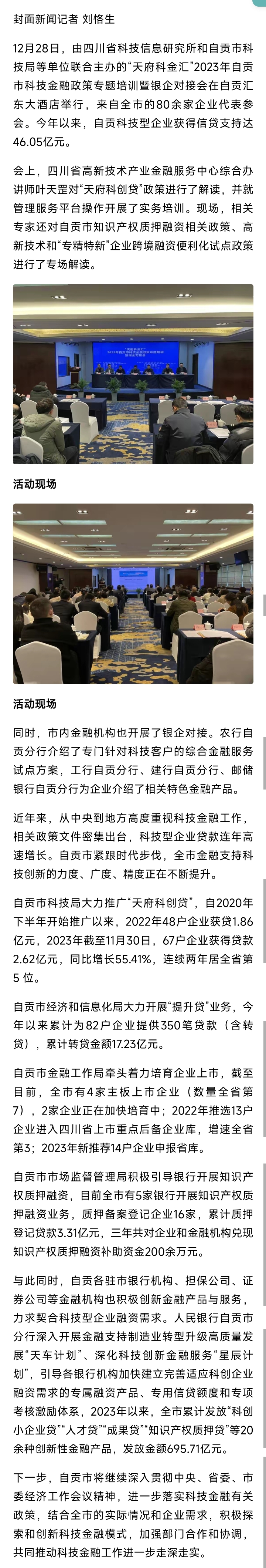 [盐都杂谈] 2023年自贡科技型企业获得信贷支持达46.05亿元