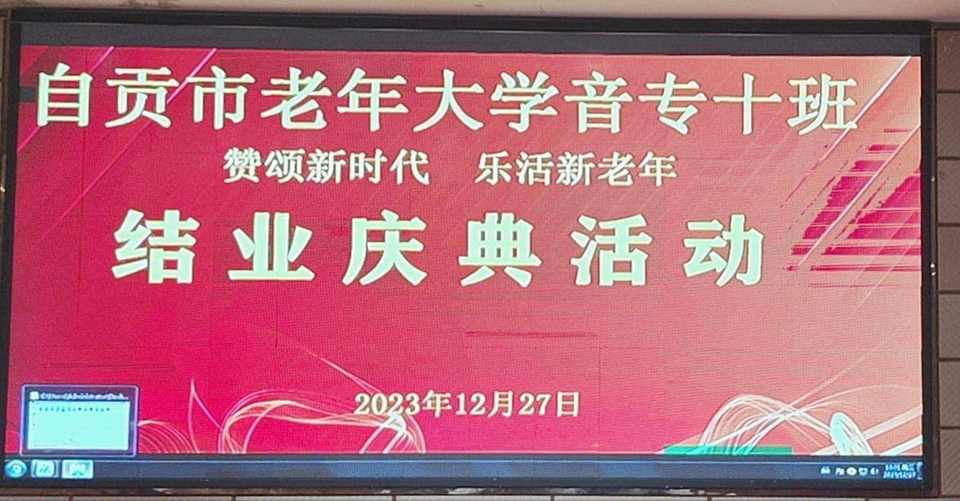 12月27日老年大学音专十班结业庆典活动,在龙湖春天酒店举行,主持人华哥,芬芳先请老师讲话,接着全班大合唱开始,各小组都表演了精彩的文艺节目,中间穿插互动游戏,整个活动在一遍欢歌笑语中园滿结束。