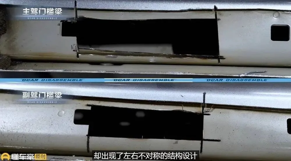 这期节目中,他们一次性拆了10款家用紧凑型轿车,其中就包括销量刷遍各大榜单的秦PLUS DM-i。从拆车的情况来看,懂车帝发现比亚迪秦PLUS DM-i,使用的主副驾门框梁的用料不一致,主驾驶一侧使用加强钢板,但副驾驶只有一层钢板。
