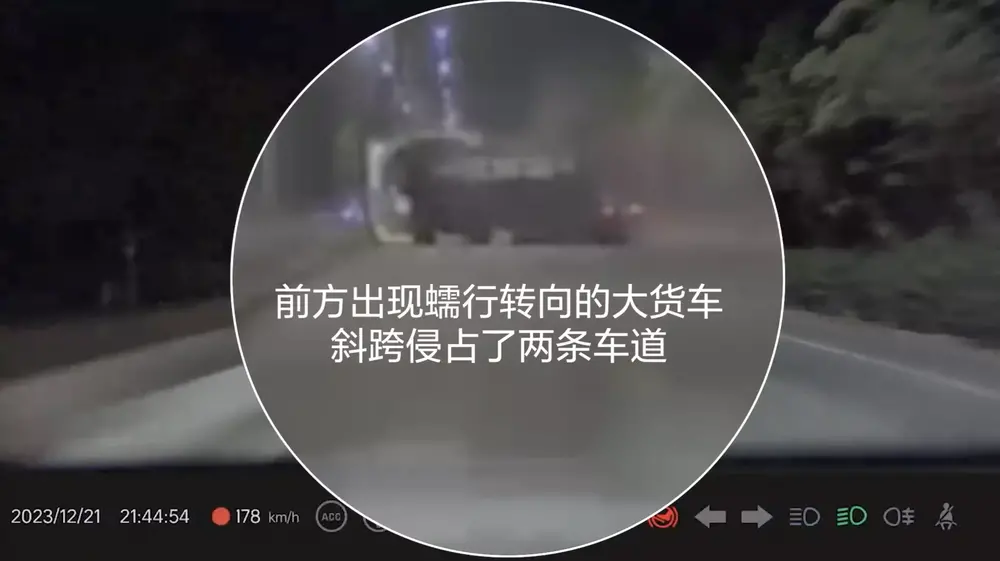理想汽车官方的通报显示:碰撞前3秒,车速达到178km/h,驾驶员采取制动措施,最终以96km/h的速度追尾前方卡车,钻入卡车下方后冲出道路。