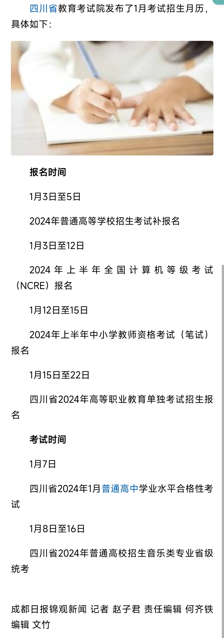 [盐都杂谈] 2024年1月四川考试招生月历出炉