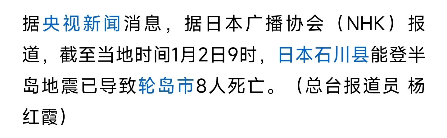 [盐都杂谈] 日本石川县能登半岛地震已导致轮岛市8人死亡