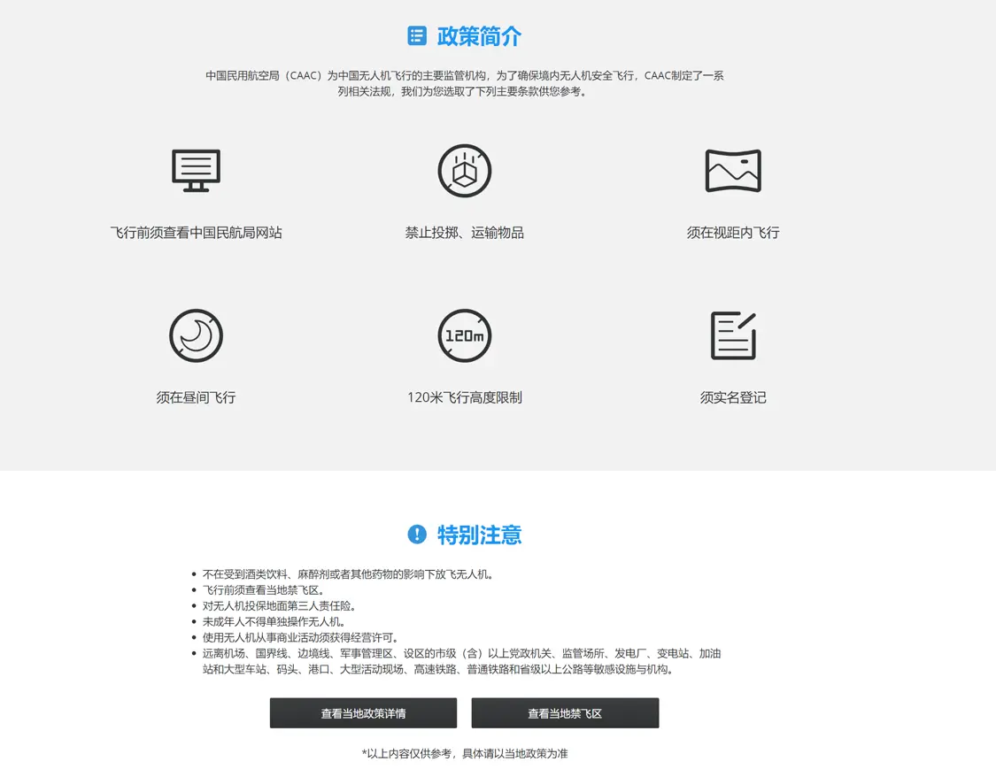 国内无人机品牌大疆官网显示的“政策简介”中,也提及了“实名登记”。